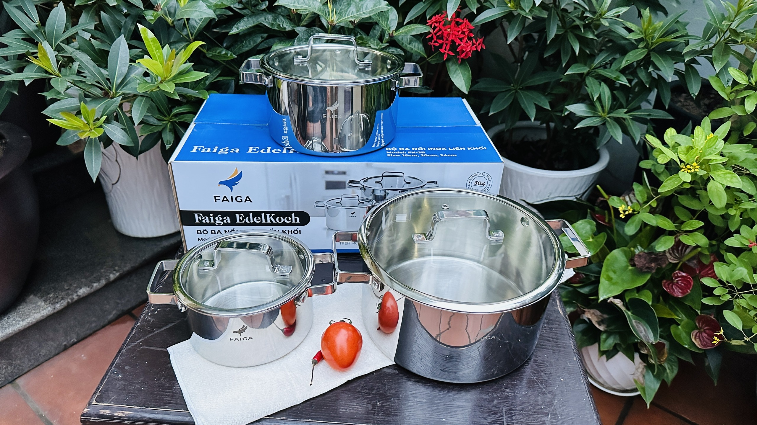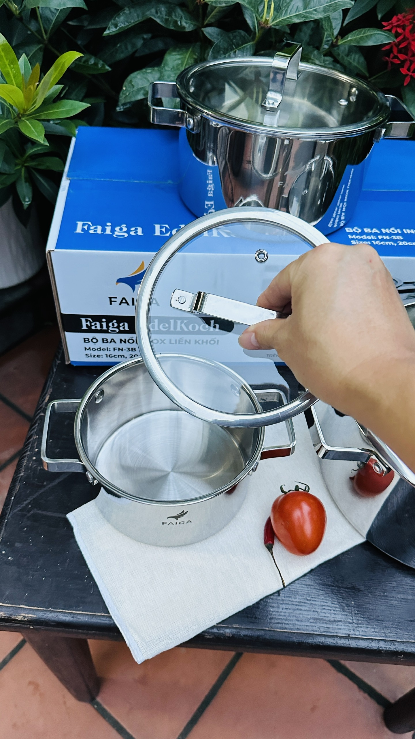 BỘ 03 NỒI INOX ĐÚC NGUYÊN KHỐI FAIGA